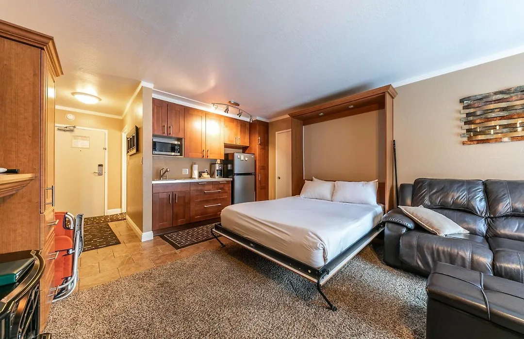 In dieser Unterkunft in Truckee kann man einen Ausblick auf die Straße genießen. Diese 1-Zimmer-Villa verfügt über ein Badezimmer mit einer begehbaren Dusche, einer getrennten Toilette und einer Waschmaschine. Ein Haartrockner und Handtücher gehören ebenfalls zur Ausstattung des Badezimmers.